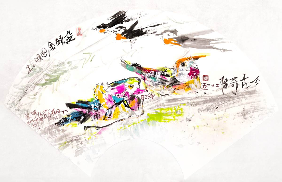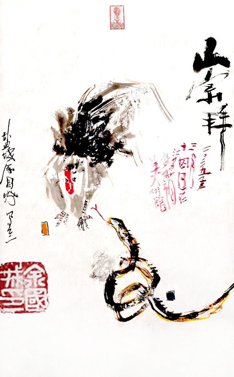 余国城的画作充满了豪放的气息,他敢于突破传统的束缚,以独特的视角和创新的技法,展现出一个又一个令人耳目一新的艺术形象。他的笔触既有力道又不失柔美,既展现出大自然的磅礴气势,又流露出对生命的细腻关怀。他的色彩运用更是独具匠心,既有浓烈的对比,又有和谐的融合,使得每一幅画作都充满了生命力与感染力。