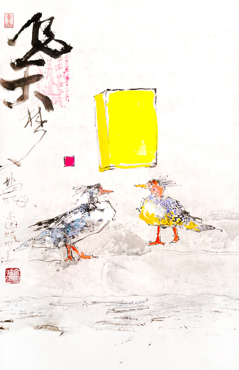 《有意味的相遇》 100cmx60cm 纸本设色 2025年