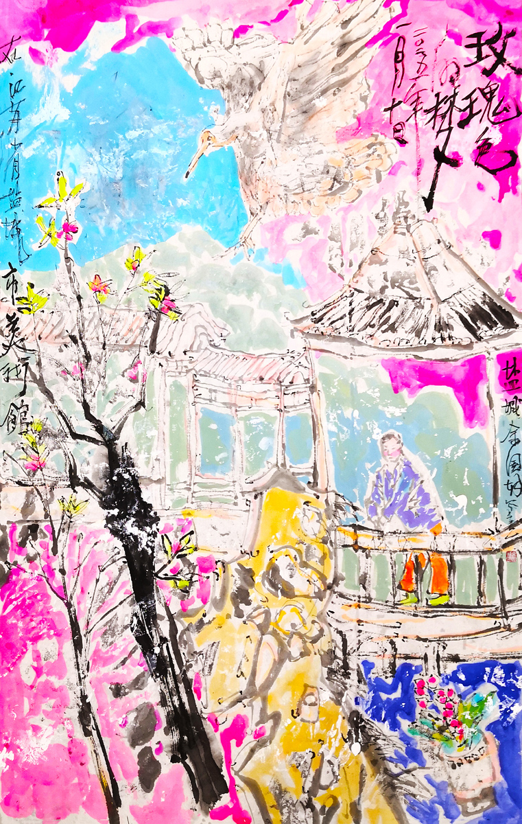 《玫瑰色的梦》 120cmx180cm 纸本设色 2025年