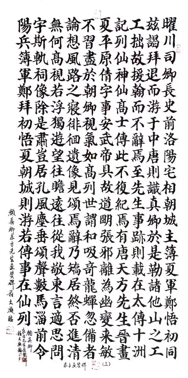 观其程大凝先生的书法作品,整体端庄流畅,师古不泥古,博采众长,用笔凝练精到,章法规整有度、线条饱满、外柔内刚。阖其气以求精,涵其韵以通神,禀赋天地灵气,富有很强的韵律感,创造性的做到了精致与情怀的融合,历史和现实的和谐统一,展现出娴熟的艺术功力,尽显本人的艺术风格,颇具大家风范,一笔一划展现着天地正气和传统韵味,不但典雅清正而且具有深厚的文化底蕴,雄浑洒脱、飘逸俊秀,看了不仅给人以美感而且给人以力量。真正做到思想性、艺术性、观赏性的统一,称赞他的书法是用心灵、用感情、用热血浇注的精神图腾。书法艺术要继承传统,才有发扬。希望程大凝先生能够积极地把中国文化传承下去,发扬光大!