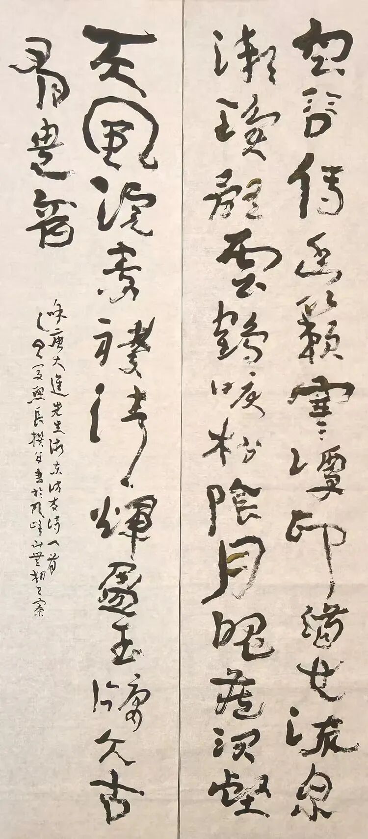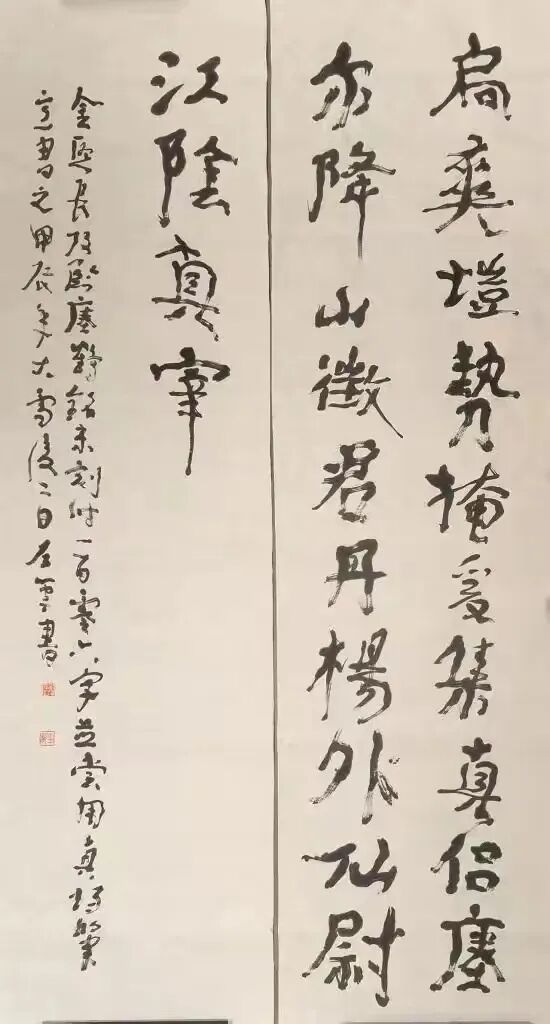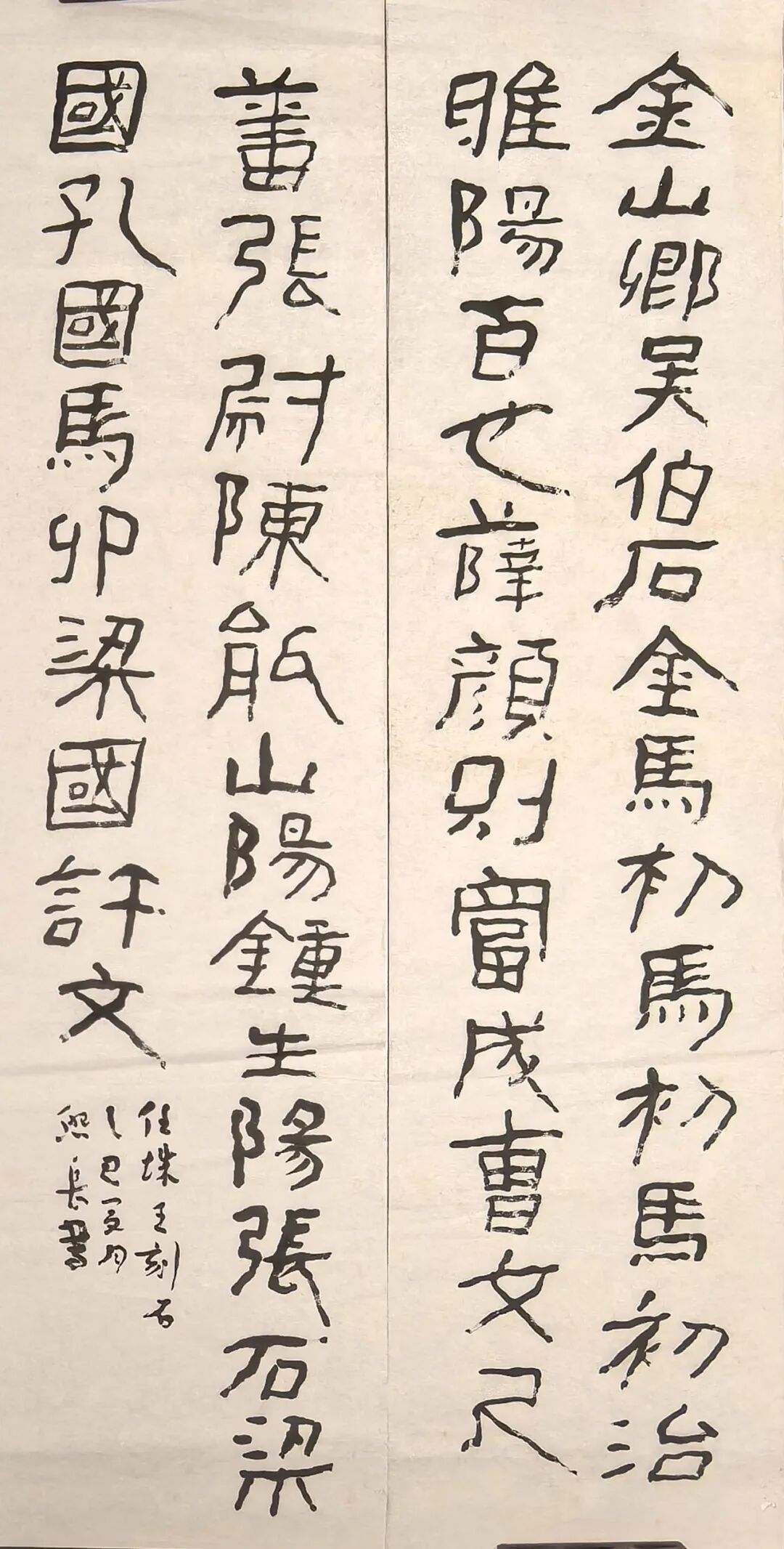 金熙长的书法艺术与碑学主张,为当代书坛提供了宝贵的启示。在本辑以自作诗联为主题的作品中,他以碑学为根基,以隐逸为心境,将慈悲与欢喜、雄浑与静穆、古法与创变和谐地统一在书法作品中,为浮躁的当代书坛带来了一股清新的“山林清风”。他的价值不仅体现在技法的创新与突破上,更在于他对书法文化本质的深刻理解与重塑,使书法回归到“修心载道”的本源。
