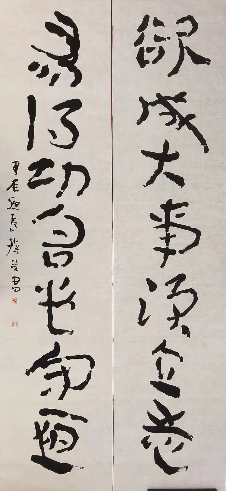“清者,上清而真阳”,他的作品宛如一泓清泉,洗尽世俗铅华。在其笔下,线条萧疏空灵,每一笔都似带着超脱尘世的仙气 。如自撰联“一室琴声邀明月,半瓯清茗洗俗尘”,整幅作品简约透彻,观之仿若能听到金玉振响,心灵也随之得到涤荡。这种“清”不仅是形式上的简洁,更是一种精神上的纯净,摒弃了世俗的功名利禄之心,回归到书法艺术的本真。