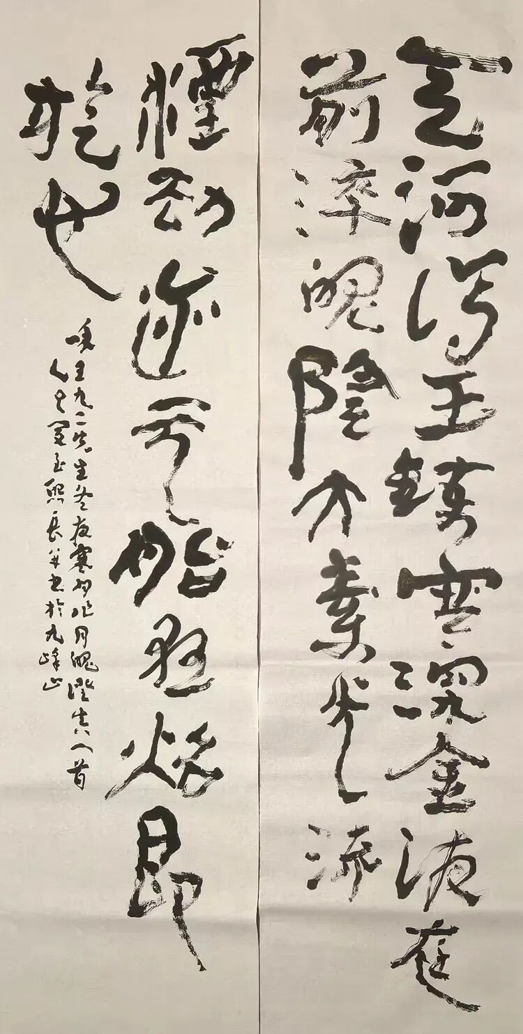 昔年张怀瓘《书断》云“无声之音,无形之相”,《金熙长左书瘗鹤铭》以仙家玄鉴照见:飞白正是这无声无形中的大音大象。当世人追逐笔墨的实相,他独向虚无处捕捞情感的暗物质;当评论家执著章法的完形,他偏在破碎处拼合宇宙的全息图。一幅《和唐大进访友诗》中,“寒谭印道心”终将飞白从技术术语点化为美学的太乙金丹--在墨尽笔枯的绝对虚空里,在“太古有遗音”这五个字的线条里,我们终将听见创世初啼的广乐,看见无极之境的鸿蒙。