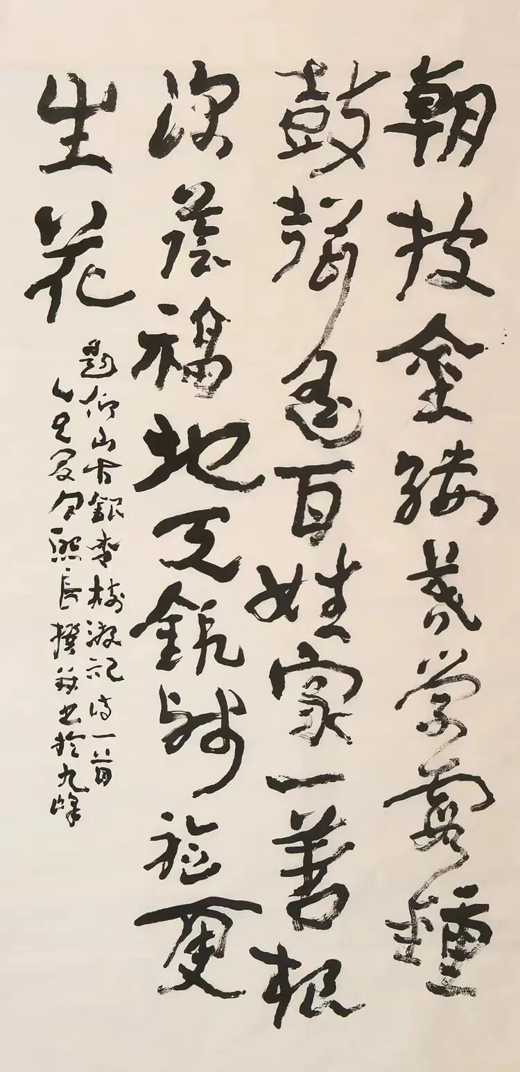 作品既有对尘世虚妄的看透,又有归真自然的澄澈,把诗意层层拆解、融入笔锋,让观者透过墨痕,触摸到诗中挣脱樊笼、拥抱逍遥的灵魂震颤,尽显书法艺术与诗意交融的至高境界,以笔为舟,载着诗意渡人至逍遥彼岸 。