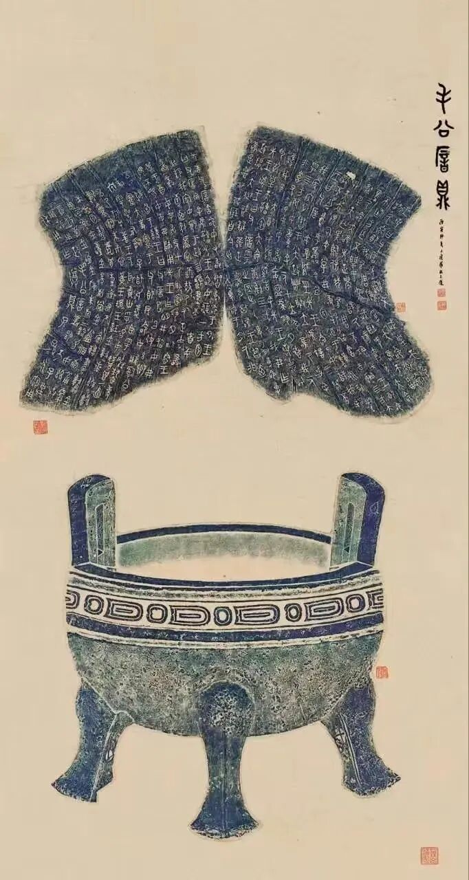 破末日论:指《毛公鼎》全形拓曰:“周室衰微时铸器,光焰今照汗青!书道存亡,在吾辈能否以鼎为脊,撑塌天之文穹!”