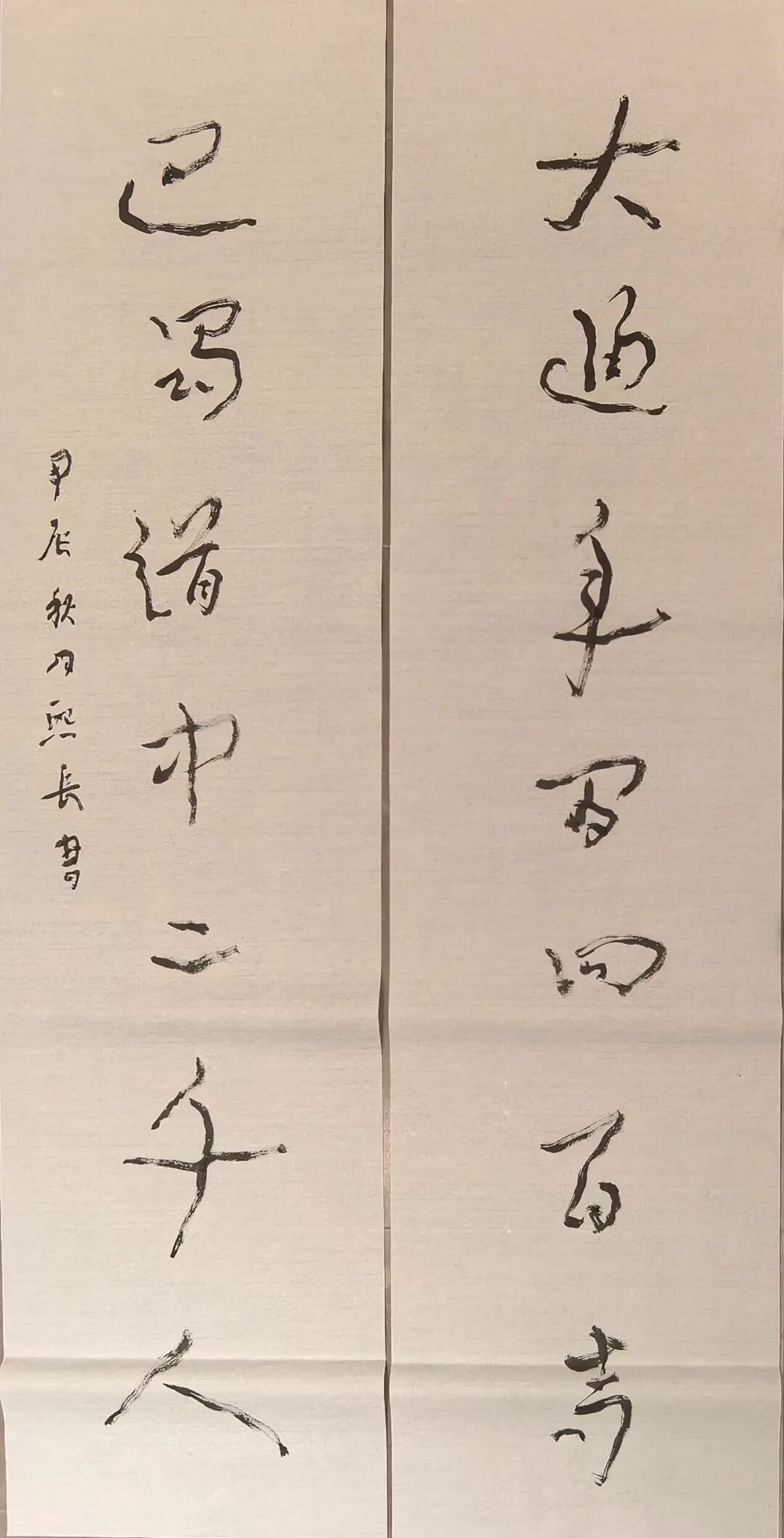 乙巳荷月既望,九峰山雷暴如盘古劈斧。余悬腕书“无在不含”,墨渖飞溅处——