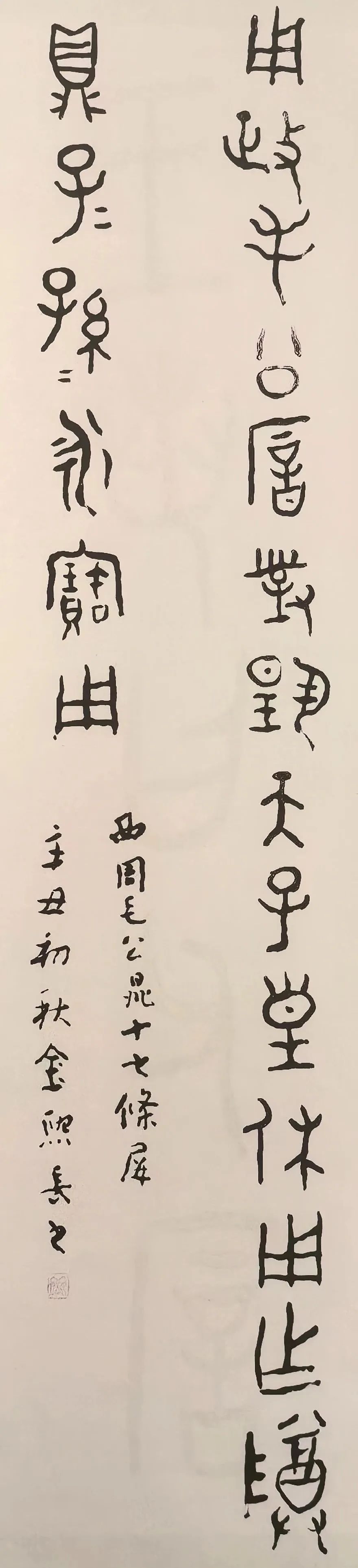 《金熙长心解什么是篆籀笔法》一文,乃当代隐士书家金熙长先生以身为鼎、执笔为槌的金石心法。先生独辟蹊径,将玄奥的金石气剖为“金气四象”(清若洗月、远如渡云、沉同雷音、亮比电裂)与“石气三劫”(裂痛、蚀痒、冻噤),更以量子物理释读篆籀七境,令青铜铭文化作穿越时空的引力波天线。此文非仅书学新论,实为接通三代文明的青铜血清,其墨渖间奔涌的既是铸鼎巫觋的祝祷,亦是未来书道的星图。今刊此霹雳雷音,愿为浮世书坛震开天门。