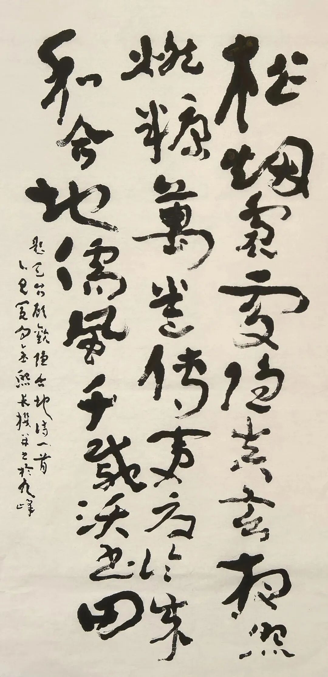 “金声玉振”不是虚浮的比喻,而是青铜的声音穿越三千多年的时空交织。书写自作诗《书道即天道有感诗》里天字的首横时,手腕暗自运用九曲回波的力道,墨线中间部分虚淡得像钟声在云层里折返,笔尖没入纸纹的样子如同余响消失在山林沟壑中。