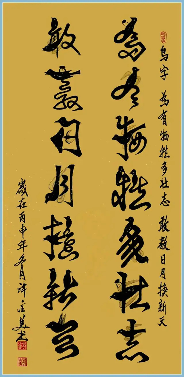 鸟虫字:为有牺牲多壮志,敢叫日月换新天。138cmx69cm(孤品)。