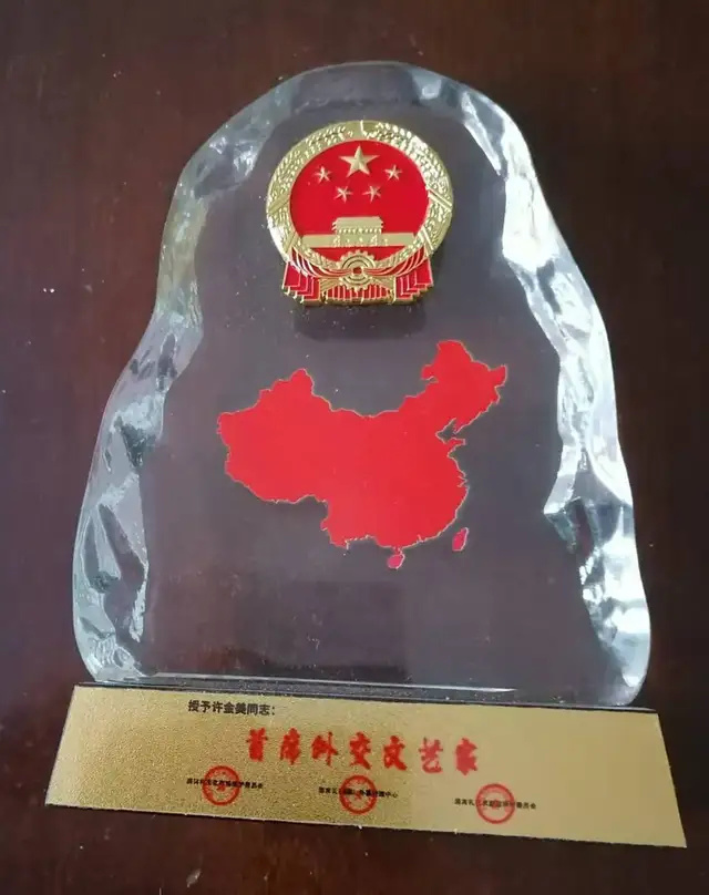 香港著名学者,甲骨文书法家饶宗颐在国内外一些报刊上看到了许金美发表的甲骨文书法作品后评价说:“当今奇才,中国甲骨文书法第一人"。