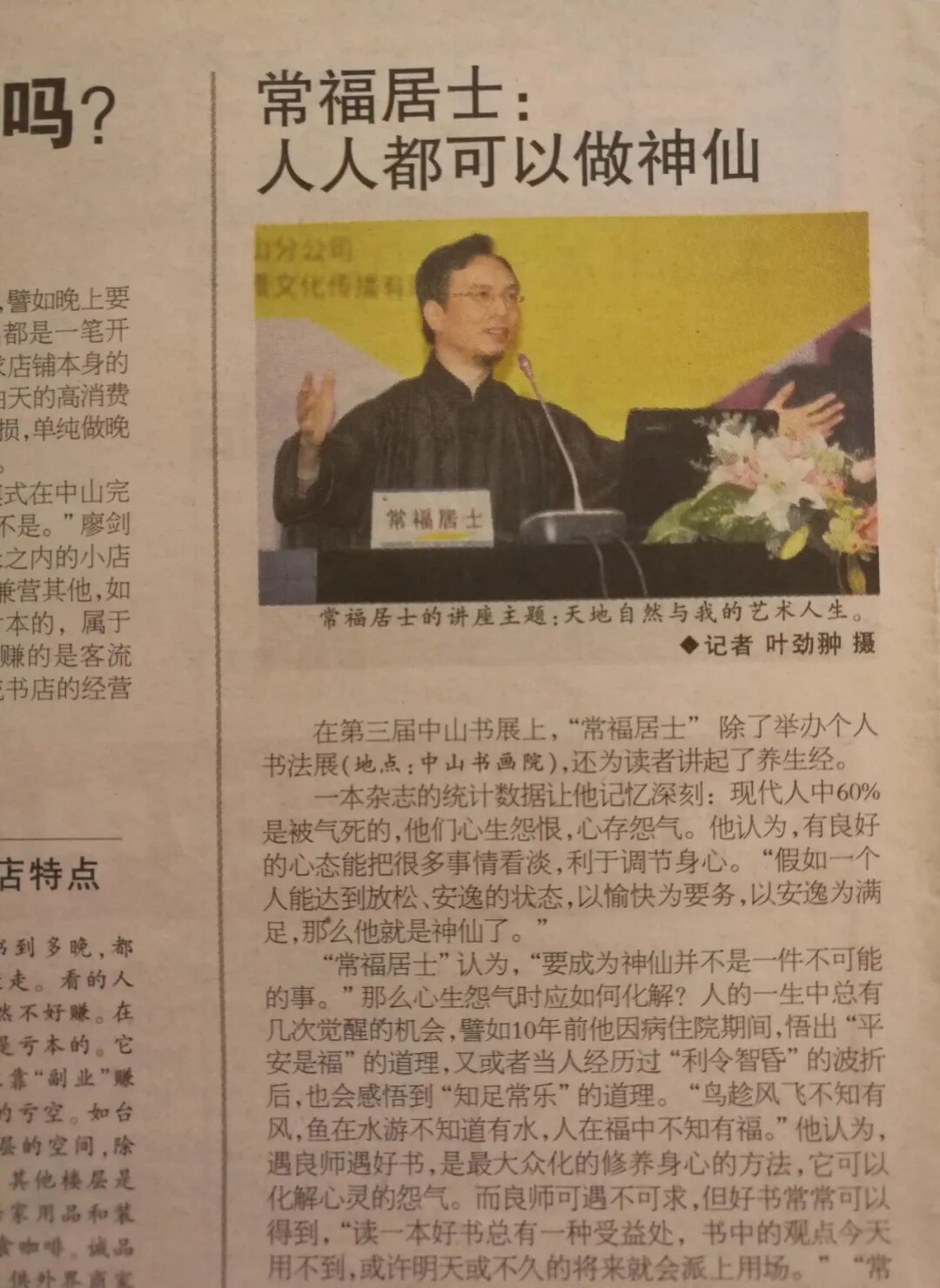 犹记2011年中山第三届书展的那个夏天,“常福居士”金熙长先生在博览中心举办的一场讲座,如清泉般注入心田。《中山日报》以《常福居士 人人都可以做神仙》为题作了报道,这个看似玄妙的标题,却深深印刻在我心中。